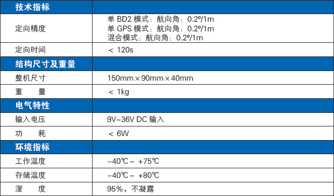 支持GPSL1/L2、BD2 B1/B2/B3單系統(tǒng)獨立定向模式和GPS+BD2雙系統(tǒng)融合定位模式。